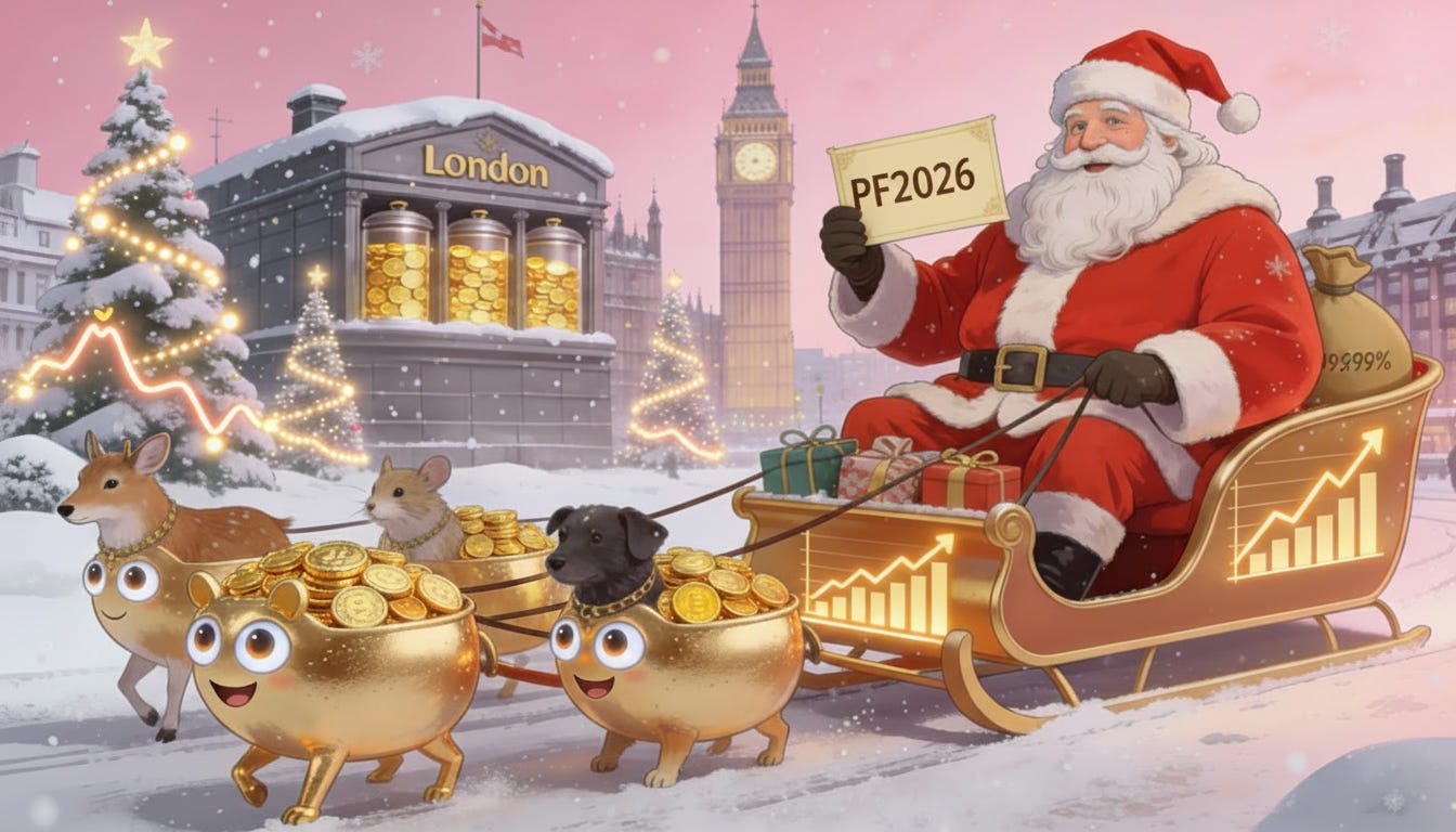 Do roku 2026 hojnost jako tomu bylo u růstu ceny zlata od našeho spuštění v roce 2022 – přes 100% zhodnocení vašich úspor! Nechť svátky přinesou klid v certifikovaných londýnských trezorech, bezpečí pojištěného zlata a radost z osvobozeného výnosu bez daní. Ať nový rok 2026 září jako slitky 99,999% čistoty a chrání vaše hodnoty před inflací lépe než jakýkoli spořicí účet.