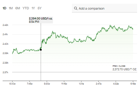 Hlavní poptávka po zlatě se odehrává v noci. Již několik dní vidím podobný vzor, ten skok je 9 hodin ráno v Šanghaji, píše Bob Elliot.