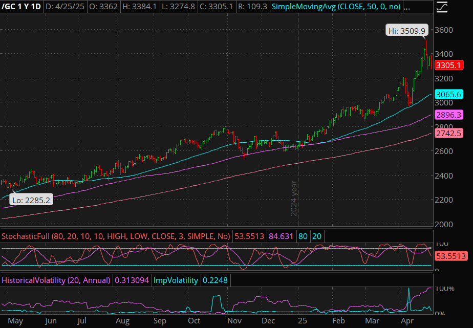 "..v posledních týdnech zlato posílilo, když se trhy prodávaly i když se zotavovaly, překonalo akcie a prokázalo svou roli jako zajištění nejen proti krizi, ale i proti zmatkům v politice. Když byla 2. dubna vyhlášena cla, globální trhy ztratily v následujících dnech více než 5,8 bilionu dolarů. Přesto zlato rostlo. Akciové trhy ztrácely ještě více, když zlato poté rostlo ještě více.