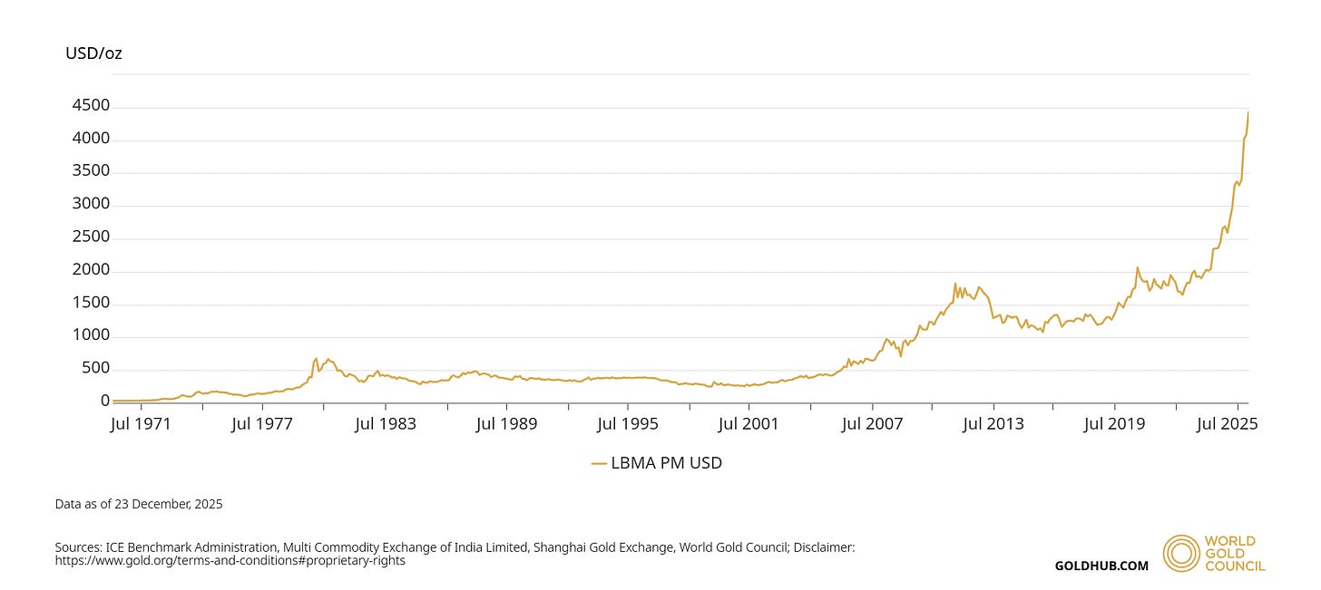📌 Zlato přestalo být cenou – stalo se nezávislou měnou samo o sobě – barometrem měnové důvěry.