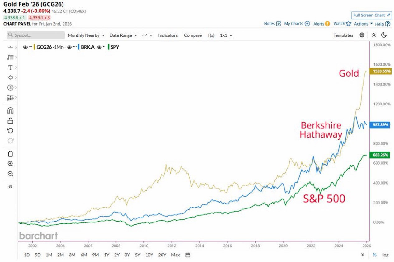 Warren Buffett sice v tomto století překonal index S&P 500, ale kdyby místo toho jednoduše koupil zlato, dosáhl by ještě lepšího výsledku.