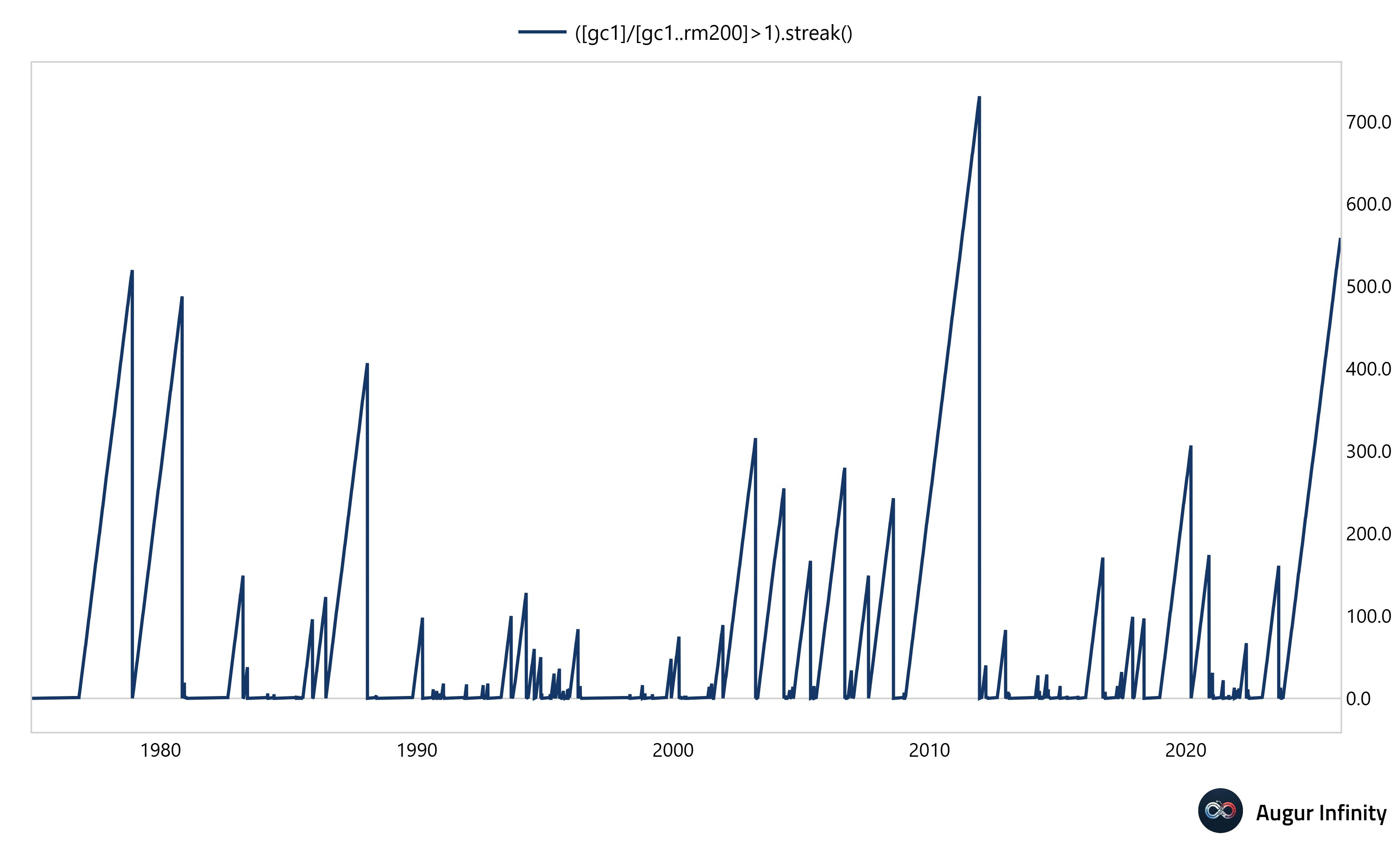A zlato se drží nad svým 200denním klouzavým průměrem už 560 obchodních dní v řadě – jde o druhou nejdelší sérii v historii: