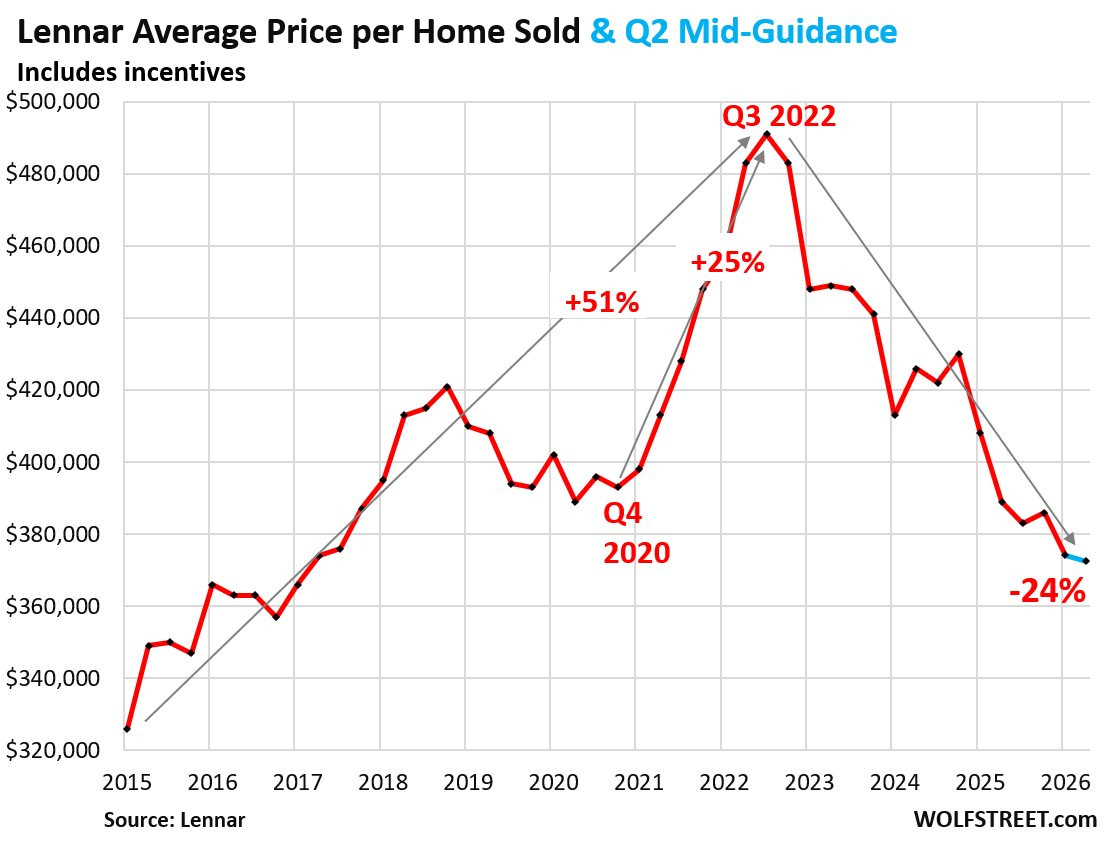 Situace u soukromého dluhu (private credit) připomíná pozdní přeceňování z roku 2007. Mezitím doba prodeje domu je v USA nejdelší v historii, značící nemožnost prodat dům za cenu očekávanou prodávajícím. Co je tedy potřeba k prodeji domů na americkém trhu? Lennar, jeden z největších stavitelů (developerů) domů, snižuje průměrnou prodejní cenu na úroveň roku 2017.